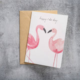 Wenskaart Flamingos